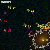 Black segments are analyzed here. Roll mouse over color images to view segments. Best viewed in a wide browser window (1200 pixels or more). Download SED & P(z) plots to view larger versions.