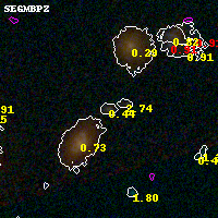 Black segments are analyzed here. Roll mouse over color images to view segments. Best viewed in a wide browser window (1200 pixels or more). Download SED & P(z) plots to view larger versions.