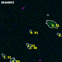 Black segments are analyzed here. Roll mouse over color images to view segments. Best viewed in a wide browser window (1200 pixels or more). Download SED & P(z) plots to view larger versions.