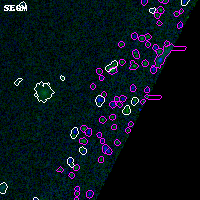 Black segments are analyzed here. Roll mouse over color images to view segments. Best viewed in a wide browser window (1200 pixels or more). Download SED & P(z) plots to view larger versions.