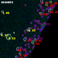 Black segments are analyzed here. Roll mouse over color images to view segments. Best viewed in a wide browser window (1200 pixels or more). Download SED & P(z) plots to view larger versions.