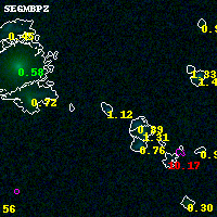 Black segments are analyzed here. Roll mouse over color images to view segments. Best viewed in a wide browser window (1200 pixels or more). Download SED & P(z) plots to view larger versions.