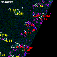 Black segments are analyzed here. Roll mouse over color images to view segments. Best viewed in a wide browser window (1200 pixels or more). Download SED & P(z) plots to view larger versions.