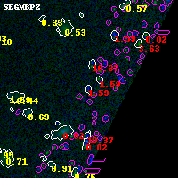 Black segments are analyzed here. Roll mouse over color images to view segments. Best viewed in a wide browser window (1200 pixels or more). Download SED & P(z) plots to view larger versions.