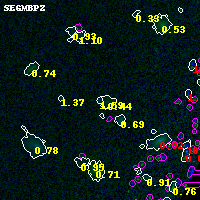 Black segments are analyzed here. Roll mouse over color images to view segments. Best viewed in a wide browser window (1200 pixels or more). Download SED & P(z) plots to view larger versions.