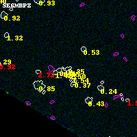 Black segments are analyzed here. Roll mouse over color images to view segments. Best viewed in a wide browser window (1200 pixels or more). Download SED & P(z) plots to view larger versions.
