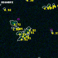 Black segments are analyzed here. Roll mouse over color images to view segments. Best viewed in a wide browser window (1200 pixels or more). Download SED & P(z) plots to view larger versions.
