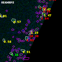 Black segments are analyzed here. Roll mouse over color images to view segments. Best viewed in a wide browser window (1200 pixels or more). Download SED & P(z) plots to view larger versions.
