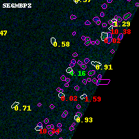 Black segments are analyzed here. Roll mouse over color images to view segments. Best viewed in a wide browser window (1200 pixels or more). Download SED & P(z) plots to view larger versions.
