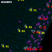 Black segments are analyzed here. Roll mouse over color images to view segments. Best viewed in a wide browser window (1200 pixels or more). Download SED & P(z) plots to view larger versions.
