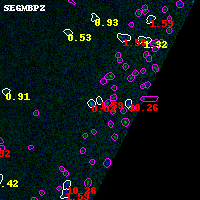 Black segments are analyzed here. Roll mouse over color images to view segments. Best viewed in a wide browser window (1200 pixels or more). Download SED & P(z) plots to view larger versions.