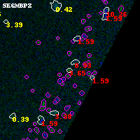 Black segments are analyzed here. Roll mouse over color images to view segments. Best viewed in a wide browser window (1200 pixels or more). Download SED & P(z) plots to view larger versions.