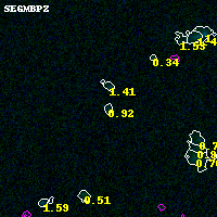 Black segments are analyzed here. Roll mouse over color images to view segments. Best viewed in a wide browser window (1200 pixels or more). Download SED & P(z) plots to view larger versions.
