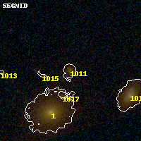 Object #1011 x,y = (2074, 1092) RA, Dec = (01:37:26.832, -8:28:46.20) = (24.36180, -8.47950) BPZ = 0.258 [0.138--0.425] type = 3.00 (Ell5_A_0) chisq2 = 0.23 ODDS = 0.54 z_cluster = 0.566