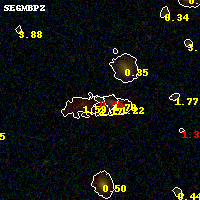 Object #126 x,y = (2328, 3266) RA, Dec = (01:37:25.824, -8:26:35.52) = (24.35760, -8.44320) BPZ = 0.449 [0.173--4.462] type = 3.00 (Ell5_A_0) chisq2 = 1.36 ODDS = 0.15 z_cluster = 0.566