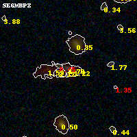 Object #129 x,y = (2341, 3263) RA, Dec = (01:37:25.752, -8:26:35.88) = (24.35730, -8.44330) BPZ = 1.782 [1.424--2.017] type = 8.20 (SB1_B10 - SB2_B10) chisq2 = 0.12 ODDS = 0.62 z_cluster = 0.566