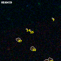 Object #15 x,y = (2624, 3619) RA, Dec = (01:37:24.624, -8:26:14.28) = (24.35260, -8.43730) BPZ = 4.554 [2.464--12.536] type = 4.00 (Ell4_A_0) chisq2 = 11.76 ODDS = 0.24 z_cluster = 0.566