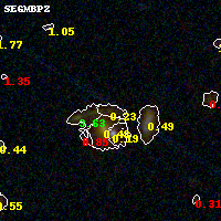 Object #163 x,y = (2506, 3204) RA, Dec = (01:37:25.104, -8:26:39.48) = (24.35460, -8.44430) BPZ = 0.229 [0.086--0.730] type = 3.10 (Ell5_A_0 - Ell4_A_0) chisq2 = 0.66 ODDS = 0.44 z_cluster = 0.566