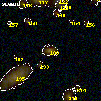 Object #180 x,y = (3096, 3159) RA, Dec = (01:37:22.704, -8:26:42.00) = (24.34460, -8.44500) BPZ = 0.483 [0.387--0.557] type = 3.00 (Ell5_A_0) chisq2 = 0.03 ODDS = 0.83 z_cluster = 0.566