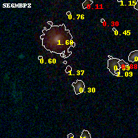 Object #243 x,y = (1342, 3032) RA, Dec = (01:37:29.808, -8:26:49.56) = (24.37420, -8.44710) BPZ = 1.374 [0.959--7.908] type = 2.00 (Ell6_A_0) chisq2 = 0.11 ODDS = 0.15 z_cluster = 0.566