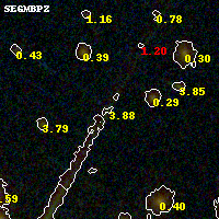 Object #254 x,y = (2814, 3012) RA, Dec = (01:37:23.856, -8:26:51.00) = (24.34940, -8.44750) BPZ = 3.880 [0.170--5.110] type = 9.20 (SB2_B10 - SB3_B10) chisq2 = 0.98 ODDS = 0.19 z_cluster = 0.566