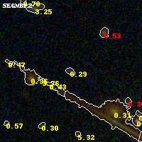 Object #278 x,y = (2459, 2924) RA, Dec = (01:37:25.272, -8:26:56.04) = (24.35530, -8.44890) BPZ = 0.291 [0.154--3.472] type = 8.60 (SB2_B10 - SB1_B10) chisq2 = 0.77 ODDS = 0.17 z_cluster = 0.566