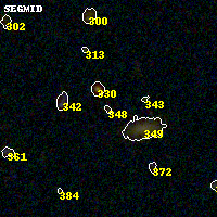 Object #348 x,y = (3282, 2770) RA, Dec = (01:37:21.960, -8:27:05.40) = (24.34150, -8.45150) BPZ = 0.357 [0.147--5.236] type = 3.00 (Ell5_A_0) chisq2 = 0.86 ODDS = 0.10 z_cluster = 0.566
