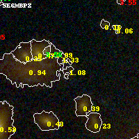 Object #392 x,y = (2423, 2679) RA, Dec = (01:37:25.440, -8:27:10.80) = (24.35600, -8.45300) BPZ = 1.080 [0.100--1.845] type = 8.30 (SB1_B10 - SB2_B10) chisq2 = 0.35 ODDS = 0.22 z_cluster = 0.566
