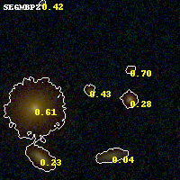 Object #393 x,y = (2138, 3058) RA, Dec = (01:37:26.592, -8:26:48.12) = (24.36080, -8.44670) BPZ = 0.429 [0.181--0.886] type = 3.00 (Ell5_A_0) chisq2 = 0.08 ODDS = 0.29 z_cluster = 0.566