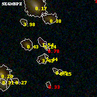 Object #430 x,y = (3140, 2592) RA, Dec = (01:37:22.536, -8:27:16.20) = (24.34390, -8.45450) BPZ = 0.782 [0.257--5.640] type = 3.00 (Ell5_A_0) chisq2 = 1.25 ODDS = 0.14 z_cluster = 0.566