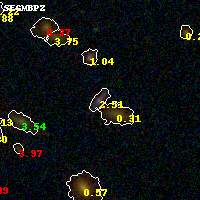 Object #453 x,y = (2048, 2561) RA, Dec = (01:37:26.952, -8:27:18.00) = (24.36230, -8.45500) BPZ = 2.509 [2.249--2.702] type = 9.50 (SB3_B10 - SB2_B10) chisq2 = 0.57 ODDS = 0.75 z_cluster = 0.566
