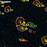 Object #455 x,y = (1937, 2543) RA, Dec = (01:37:27.384, -8:27:19.08) = (24.36410, -8.45530) BPZ = 2.133 [1.222--6.912] type = 4.00 (Ell4_A_0) chisq2 = 0.57 ODDS = 0.11 z_cluster = 0.566