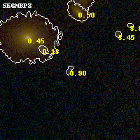 Object #494 x,y = (2302, 2478) RA, Dec = (01:37:25.920, -8:27:23.04) = (24.35800, -8.45640) BPZ = 0.904 [0.431--3.007] type = 10.50 (SB11_A_0_l - SB3_B10) chisq2 = 0.86 ODDS = 0.49 z_cluster = 0.566