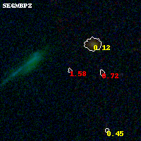 Object #500 x,y = (1467, 2458) RA, Dec = (01:37:29.280, -8:27:24.12) = (24.37200, -8.45670) BPZ = 1.584 [0.583--2.860] type = 8.90 (SB2_B10 - SB1_B10) chisq2 = 2.01 ODDS = 0.19 z_cluster = 0.566