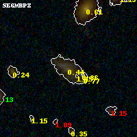 Object #519 x,y = (3329, 2384) RA, Dec = (01:37:21.768, -8:27:28.44) = (24.34070, -8.45790) BPZ = 0.443 [0.223--0.710] type = 7.80 (SB1_B10 - Scd_B10) chisq2 = 0.12 ODDS = 0.32 z_cluster = 0.566