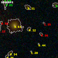 Object #540 x,y = (3100, 2351) RA, Dec = (01:37:22.680, -8:27:30.60) = (24.34450, -8.45850) BPZ = 0.121 [0.042--0.909] type = 4.00 (Ell4_A_0) chisq2 = 0.48 ODDS = 0.52 z_cluster = 0.566