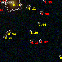 Object #586 x,y = (3107, 2273) RA, Dec = (01:37:22.656, -8:27:35.28) = (24.34440, -8.45980) BPZ = 1.200 [0.450--6.864] type = 2.00 (Ell6_A_0) chisq2 = 0.93 ODDS = 0.05 z_cluster = 0.566