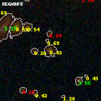 Object #605 x,y = (2878, 2230) RA, Dec = (01:37:23.592, -8:27:37.80) = (24.34830, -8.46050) BPZ = 0.434 [0.334--0.547] type = 2.60 (Ell5_A_0 - Ell6_A_0) chisq2 = 0.00 ODDS = 0.71 z_cluster = 0.566
