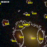 Object #654 x,y = (2109, 2115) RA, Dec = (01:37:26.688, -8:27:44.64) = (24.36120, -8.46240) BPZ = 0.203 [0.096--5.395] type = 4.00 (Ell4_A_0) chisq2 = 0.64 ODDS = 0.29 z_cluster = 0.566