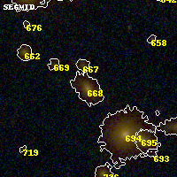 Object #668 x,y = (2741, 2046) RA, Dec = (01:37:24.144, -8:27:48.96) = (24.35060, -8.46360) BPZ = 0.568 [0.458--0.644] type = 3.00 (Ell5_A_0) chisq2 = 0.01 ODDS = 0.81 z_cluster = 0.566