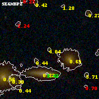 Object #682 x,y = (2876, 2051) RA, Dec = (01:37:23.592, -8:27:48.60) = (24.34830, -8.46350) BPZ = 4.045 [3.223--5.160] type = 9.90 (SB3_B10 - SB2_B10) chisq2 = 0.83 ODDS = 0.32 z_cluster = 0.566