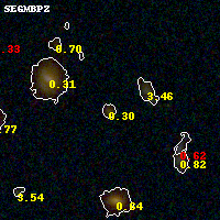 Object #705 x,y = (3397, 2000) RA, Dec = (01:37:21.480, -8:27:51.48) = (24.33950, -8.46430) BPZ = 0.296 [0.165--5.311] type = 3.00 (Ell5_A_0) chisq2 = 0.88 ODDS = 0.36 z_cluster = 0.566