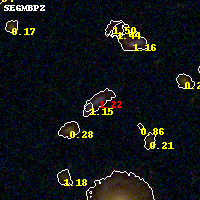 Object #787 x,y = (3513, 1812) RA, Dec = (01:37:21.024, -8:28:03.00) = (24.33760, -8.46750) BPZ = 1.217 [1.144--2.594] type = 9.20 (SB2_B10 - SB3_B10) chisq2 = 1.03 ODDS = 0.28 z_cluster = 0.566