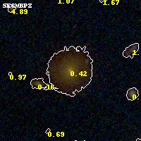Object #790 x,y = (3072, 1779) RA, Dec = (01:37:22.800, -8:28:04.80) = (24.34500, -8.46800) BPZ = 0.422 [0.357--0.497] type = 5.20 (ES0_B10 - Sbc_B10) chisq2 = 0.04 ODDS = 0.90 z_cluster = 0.566
