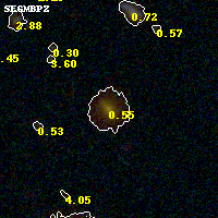 Object #791 x,y = (1864, 1792) RA, Dec = (01:37:27.696, -8:28:04.08) = (24.36540, -8.46780) BPZ = 0.547 [0.433--0.617] type = 3.10 (Ell5_A_0 - Ell4_A_0) chisq2 = 0.04 ODDS = 0.80 z_cluster = 0.566