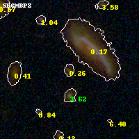 Object #826 x,y = (2425, 1692) RA, Dec = (01:37:25.416, -8:28:10.20) = (24.35590, -8.46950) BPZ = 0.258 [0.100--0.729] type = 3.00 (Ell5_A_0) chisq2 = 0.17 ODDS = 0.49 z_cluster = 0.566