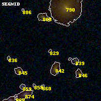 Object #829 x,y = (3040, 1693) RA, Dec = (01:37:22.944, -8:28:09.84) = (24.34560, -8.46940) BPZ = 0.688 [0.187--5.756] type = 3.00 (Ell5_A_0) chisq2 = 0.58 ODDS = 0.11 z_cluster = 0.566