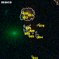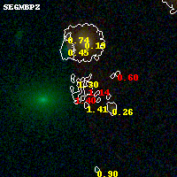 Object #888 x,y = (1722, 1569) RA, Dec = (01:37:28.272, -8:28:17.40) = (24.36780, -8.47150) BPZ = 1.139 [0.736--7.187] type = 2.00 (Ell6_A_0) chisq2 = 7.29 ODDS = 0.19 z_cluster = 0.566