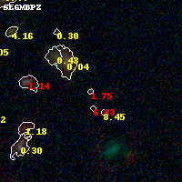 Object #923 x,y = (3383, 1502) RA, Dec = (01:37:21.552, -8:28:21.36) = (24.33980, -8.47260) BPZ = 1.753 [0.270--3.095] type = 9.10 (SB2_B10 - SB3_B10) chisq2 = 1.11 ODDS = 0.13 z_cluster = 0.566