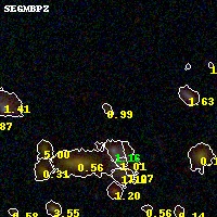 Object #99 x,y = (3102, 3308) RA, Dec = (01:37:22.680, -8:26:33.00) = (24.34450, -8.44250) BPZ = 0.994 [0.087--1.562] type = 9.20 (SB2_B10 - SB3_B10) chisq2 = 0.63 ODDS = 0.28 z_cluster = 0.566
